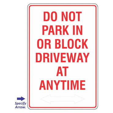 Car Park Sign - Do Not Park In Or Block Driveway At Anytime