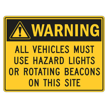 Warning Sign - All Vehicles Must Use Hazard Lights On This Site