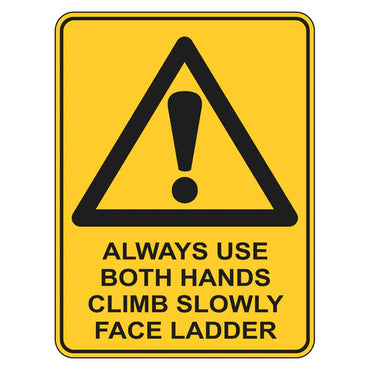 Warning Sign - Always Use Both Hands Climb Slowly Face Ladder